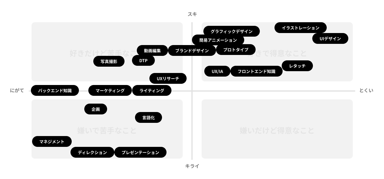 エンタメ系のUI/UXデザインやWEBデザイン、グラフィックデザインを主に2社で業務委託として常駐しながら、平日夜間や土日祝日には他の案件も柔軟に対応しています。